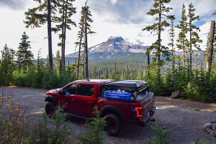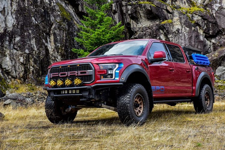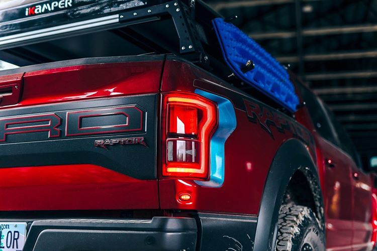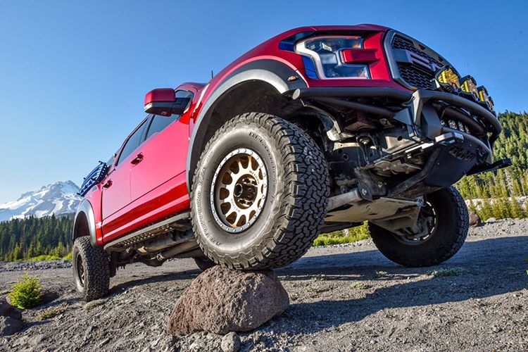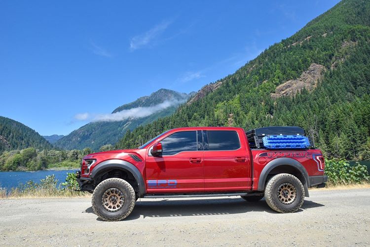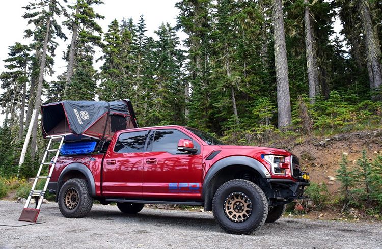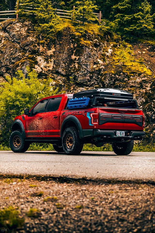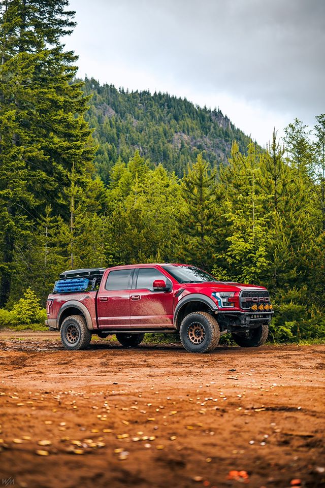 Talk about adventure ready! Rachael’s 2018 Raptor has all the goodies you’d need to get you out and explore everything the world has to offer and still tear up the trails. Starting at the front of the truck with the Addictive Desert Designs Pro Bolt on front bumper with 6 Baja Designs Squadron Pros in clear with wide pattern lenses and the light hoop add on supporting the 4 Baja Designs LP6’s in amber driving combo lenses. Of course, we can’t forget about what is hidden behind the grille and under the hood. An ORA 550 Package that includes a COBB intercooler kit, COBB Cold air intake, AMS intake tubes, Ford Performance 0.031 spark plugs, and a BDX SCT Tuner with a custom tune from Gearhead. Additional Performance parts include Borla Atack exhaust equipped with carbon fiber tips, a Borla resonator, SPD downpipes, SPD turbo adapters. Moving to the rear of the truck, a KB Voodoo Fabrications Max Modular Bed Rack and IKamper Skycamp Mini Rooftop tent makes camping a lot easier for her and the MaxTrax recovery boards to help her get out of almost any sticky situation. Rachael ditched the factory front coils and went with Geiser +3” Coils and Deaver +3” (OEM lift block delete) HD rear springs to keep her level, but smooth in the rear. For some extra light in the rear, she went with the ORA Reverse light kit with harness and 2 Baja Design S2’s in clear with wide pattern lenses. The Reverse kit is activated automatically by putting the truck in reverse and can also be activated manually with the upfitter switch of your choosing. Finally, she’s running Method 305 NV 16”x8” wheels in Bronze, wrapped in 37” BF Goodrich K02’s. Her plan in the future is to get FOX Live Valve 3.0s and then maybe eventually get a race series mid travel kit.