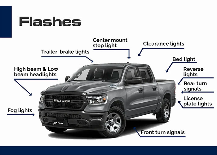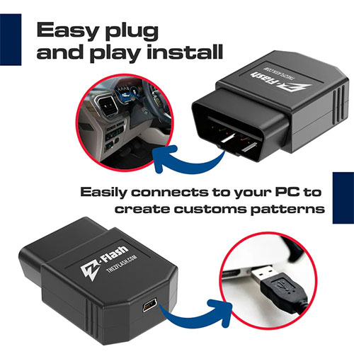 The Z-Flash Plug and Play Flasher connects directly to the OBD-II port of select Jeep and RAM models. It allows you to flash your headlights, taillights, fog lights, corner markers, reverse lights, and license plate lights, improving visibility and safety. This non-invasive system will not damage your vehicle and can be removed at any time. For installation flexibility, use the plug-and-play system with the switch or hardwire it to your controller or switch using the provided wiring kit. Activating the Z-Flash is easy—simply press the switch for one second. Upgrade your Jeep or RAM vehicle's lighting system with the Z-Flash Plug and Play Flasher for reliable performance and improved road visibility.