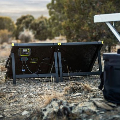 The Goal Zero Boulder 200 Briefcase Solar Charging Kit is an effective solar charging solution. With two 100-watt solar panels and an integrated 20A controller, it can easily keep 12v DC batteries charged and ready for action. It can be folded and stored easily to and from the campsite but offers a large surface area that can be easily positioned and repositioned to capture energy throughout the day.